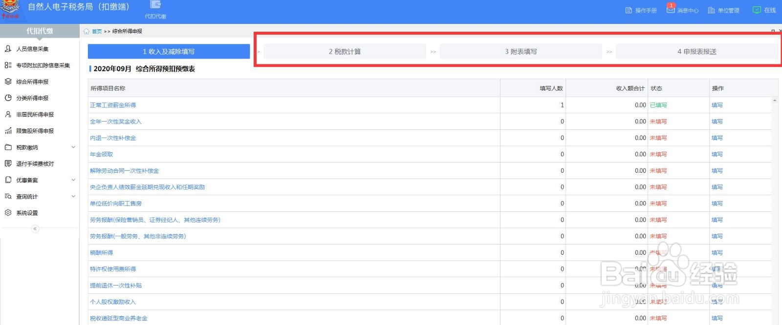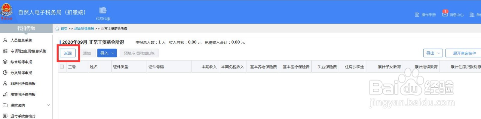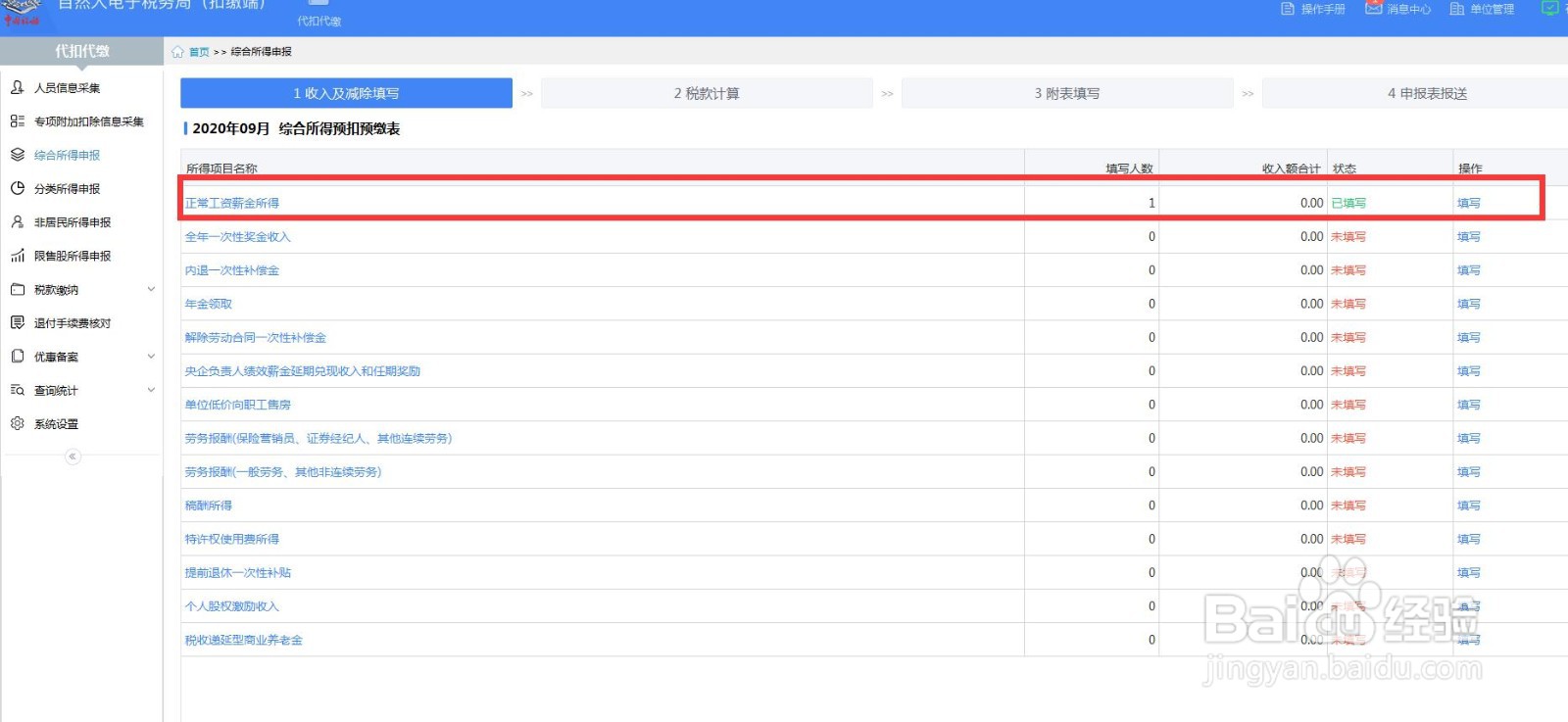 3/5添加完后选择左侧栏综合所得申报,选择第一个正常工资薪金所得