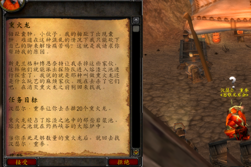 在灼热峡谷的熔渣之池,坐标(48,48),熏火龙任务做法如下: