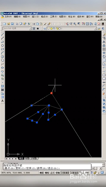 3/4选中图形,点击夹点,按三下空格键就是缩放图形