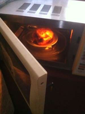 5、放进微波炉,整只的话是烤25分,半只是烤15分