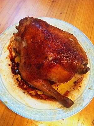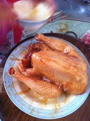 4、把酱汁全部抹在鸡身上,包括里面【倒进去】