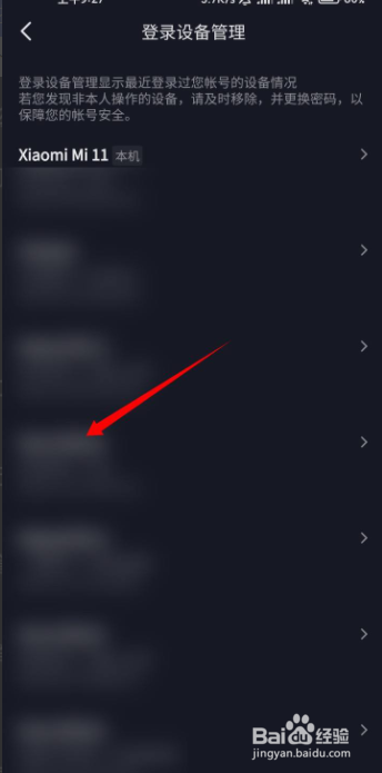 4/5进入登录设备管理界面,我们找到并点击需要删除的设备;