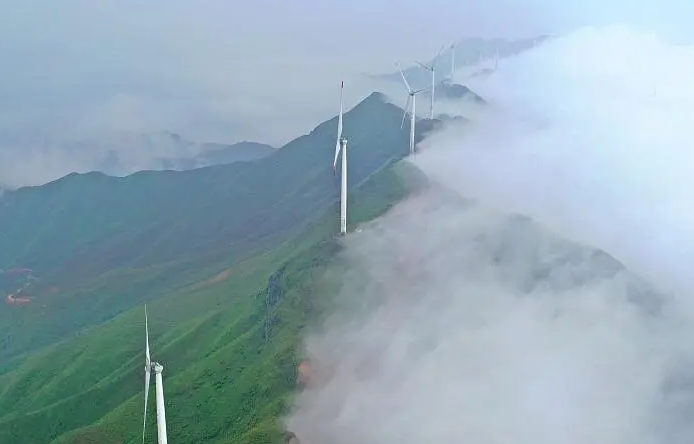 2、仰望天湖山,只见那嵯峨黛绿的群山,满山蓊郁荫翳的树木与湛蓝辽阔的天空,缥缈的几缕云恰好构成了一幅雅趣盎然的淡墨山水画。