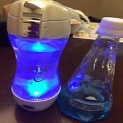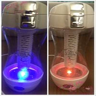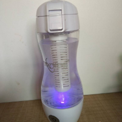3、盖好盖子,下面的开关按两次或三次,按两次是一分钟模式,三次是三分钟模式,蓝光亮起来就行,三分钟后倒出来接着再续,再一分或三分钟都可以,三分钟生成近1000ppb的水素水,一分的就低点也不错。