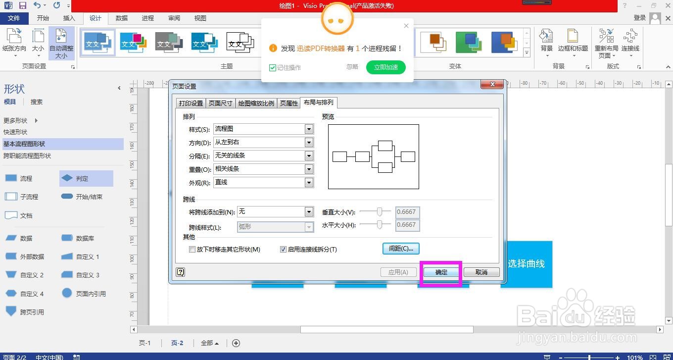 怎样设置Visio流程图中形状之间的默认间距