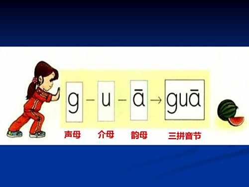 三拼音节定义:是指在声母和韵母之间还有一个介母,形成一个音节有三个拼音成分,这样的音节就是三拼音节。如jia、hua中间的i和u是介母,要读得轻,短,不重。