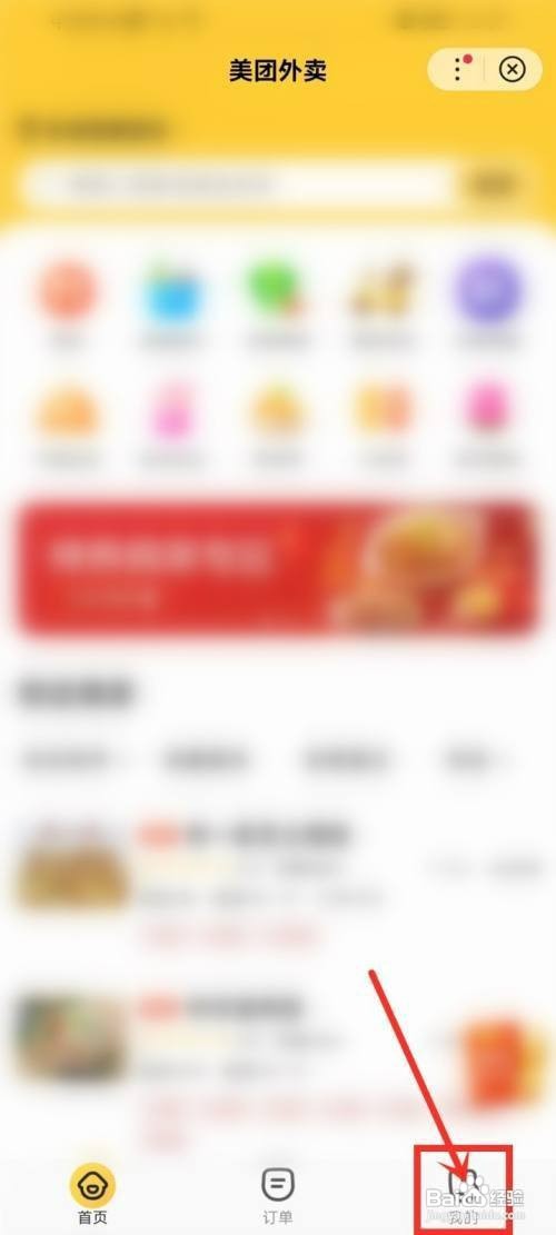 3/5进入到美团外卖小程序首页,点击底始排部“我的”。