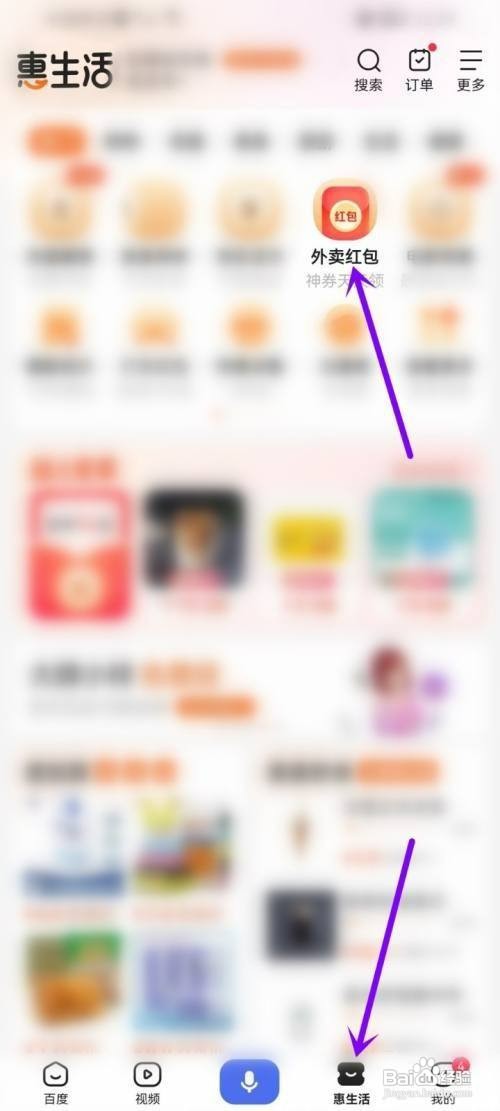 打开百度App首页,进入到惠生活页,点击上方“外卖红包”。