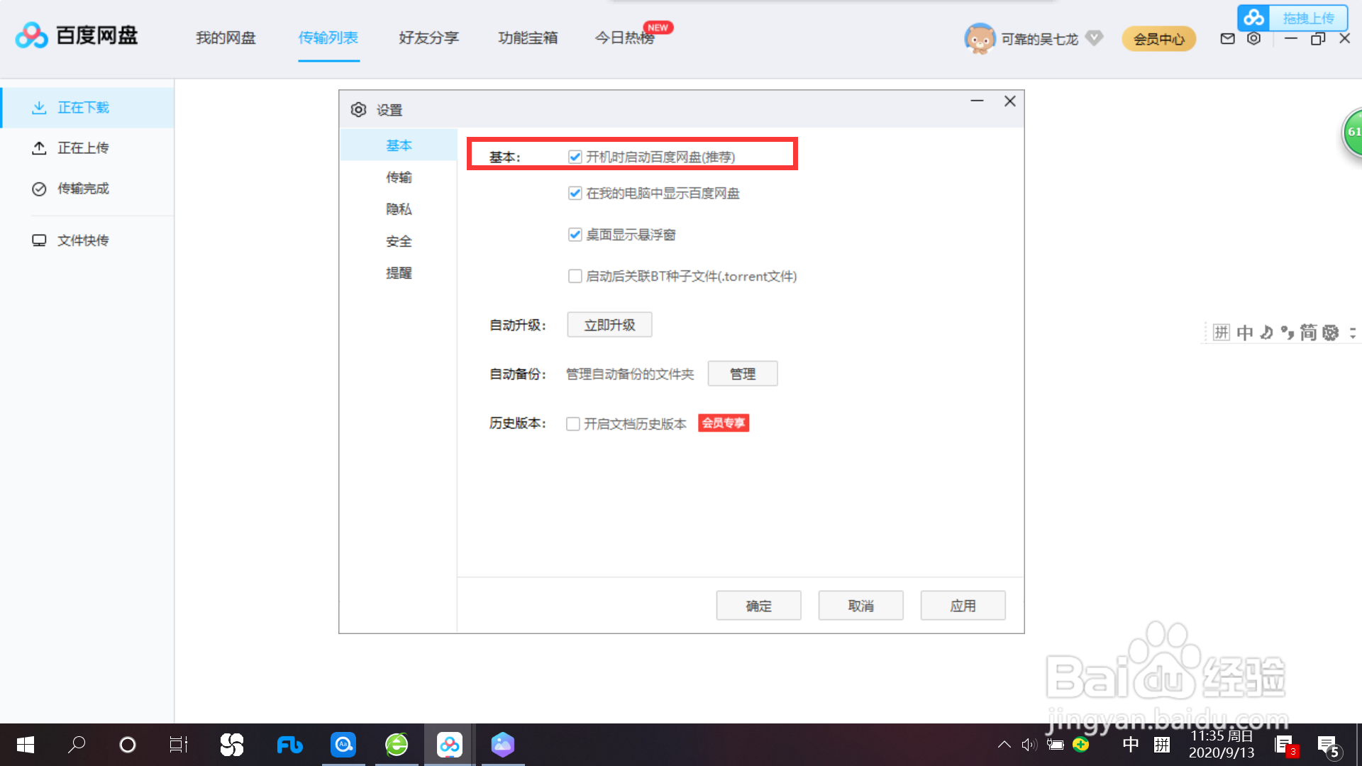 4/5其次选中其中:“开机时启动百度网盘”,这样就可以了。