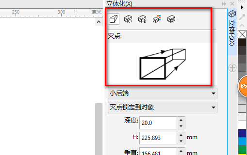 4、可以在右侧的立体化界面中调整立体化的效果和颜色等。