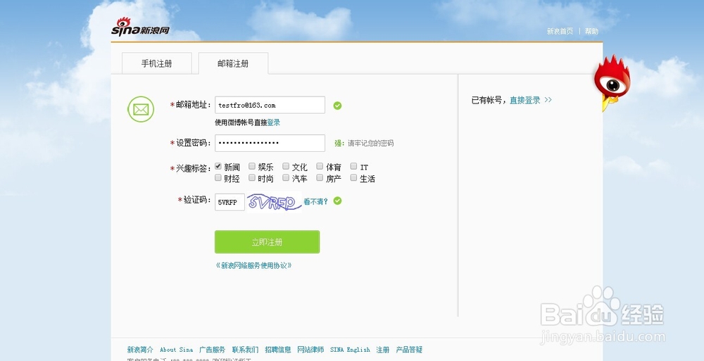 2/4打开新浪通行证页面:http://login.sina.com.cn/,立即邮箱注册。