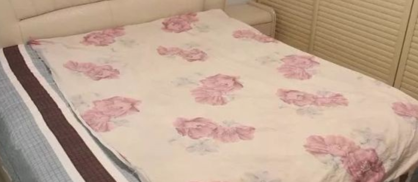 1、首先,把要使用的被套反掏过来 ,然后平整地铺在床上,被套的开口处要放在自己的对面,如下图所示。