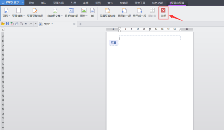 2、将编辑的内容删除后,点击【页面和页脚】功能选项里的【关闭】按钮,即可删除页眉页脚,如下图所示。