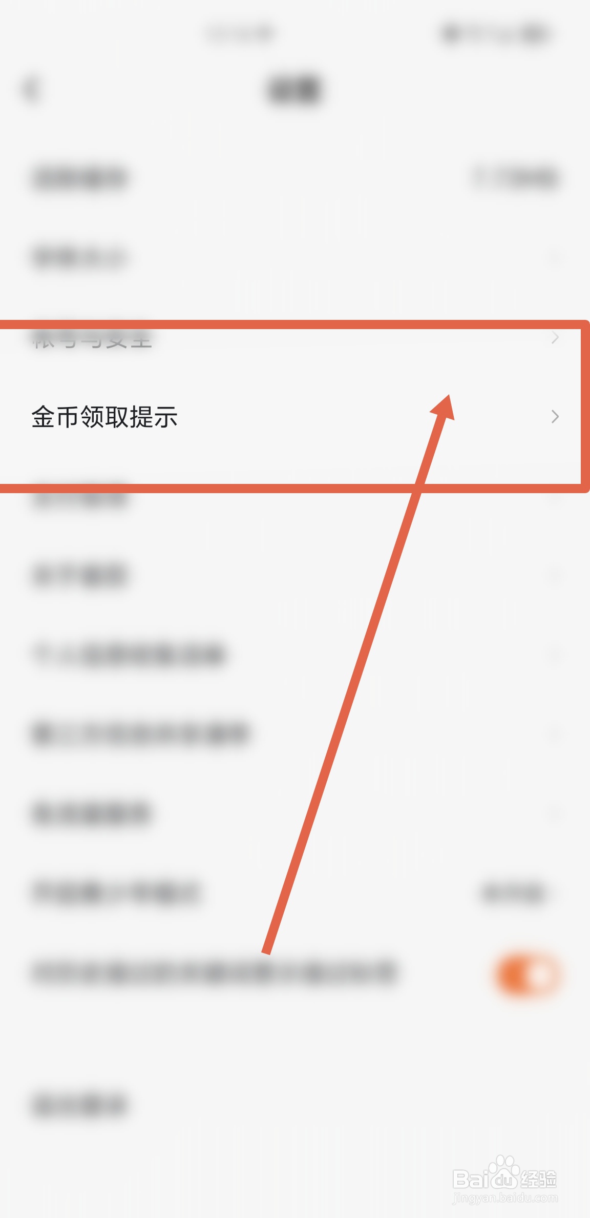 4/4在进入的界面页面内找到开启金币领取提示一栏,点击右边按钮开关后即可在番茄畅听APP开启相关功能