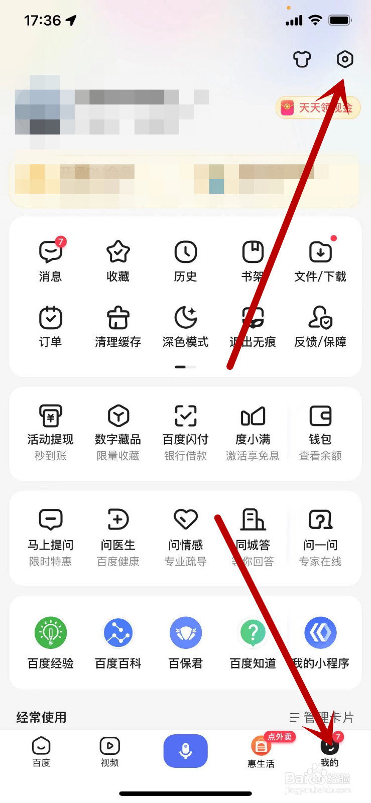 打开百度APP,点击右下角“我的”,进入我的页面中,然后点击右上角设置。