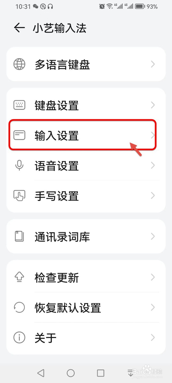 进入小艺输入法界面,点击【输入设置】