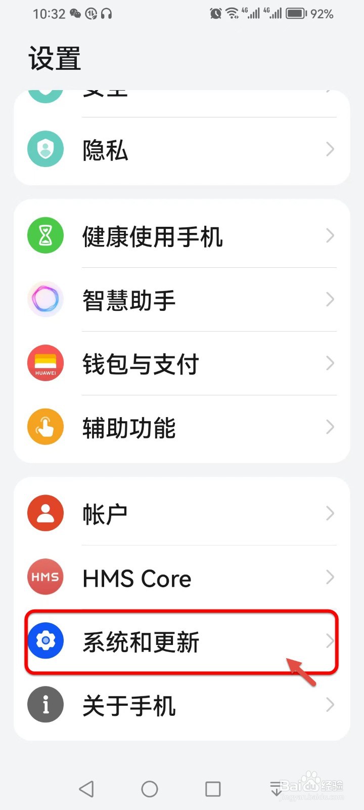 进入设置界面,点击【系统和更新】