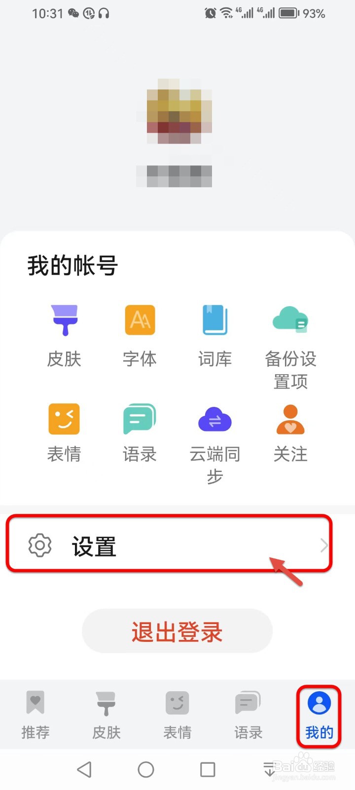 打开小艺输入法,切换到【我的】,点击【设置】