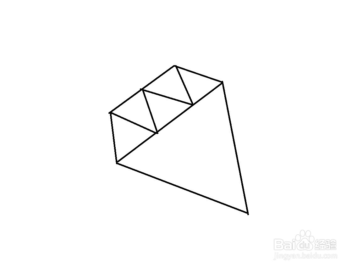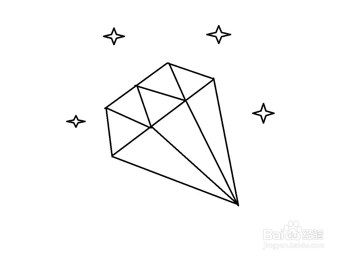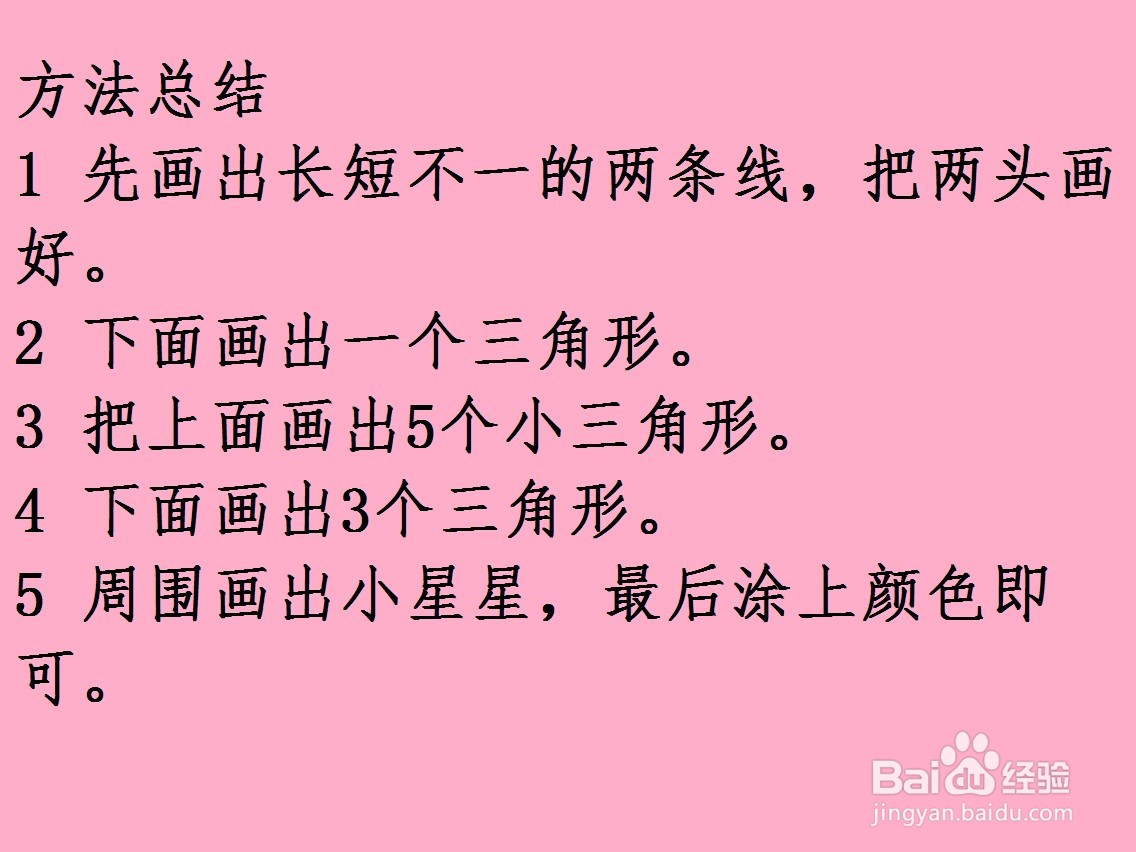 把下面的大三角画出3个小三角,周围画几个小星星,如图所示。