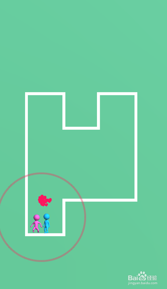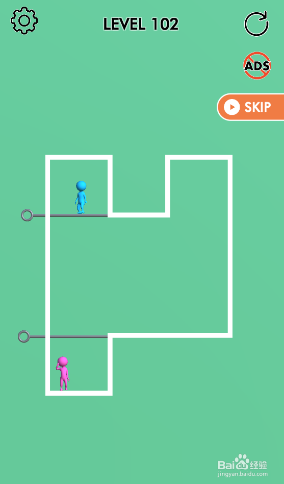 这一关的任务是营救被困的小粉人,里面有四个拉胳伟针,情况如图。