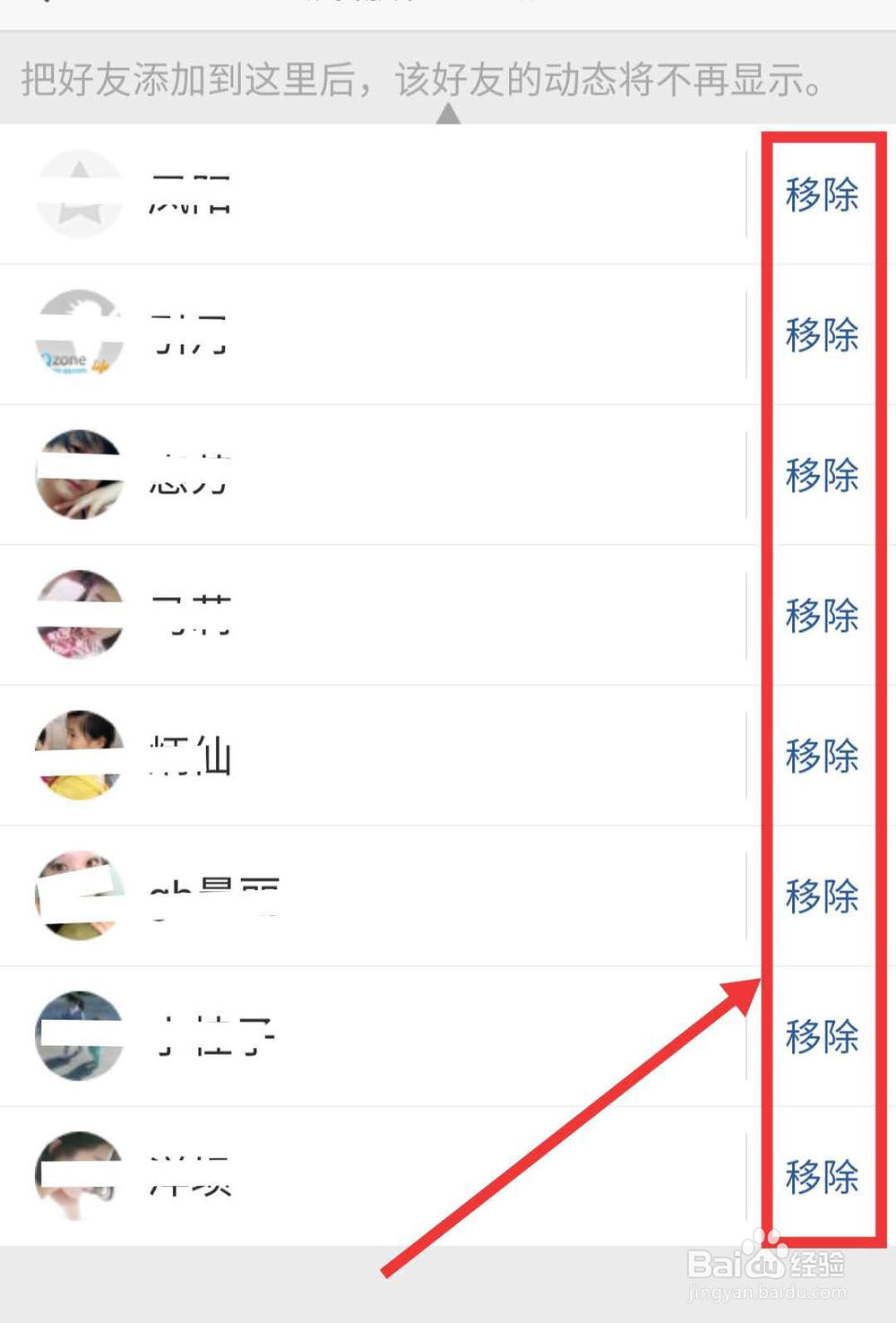 跳出页面了,要恢复的好友就点击右边相应的【移除】即可