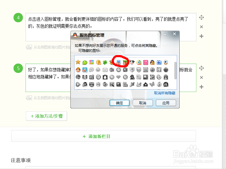 好了,如果你想隐藏掉某一个图标的话,你直接用鼠标点一下这个图标,上面会出现一圈一横线,那么这个图标就会相应地隐藏掉了。如果你想取消隐藏的话,再点一下就会显示了。