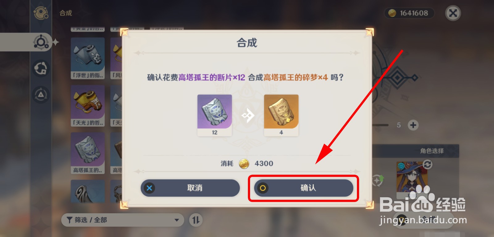在合成台页面,选中高塔孤王的碎梦,点击下方合成。