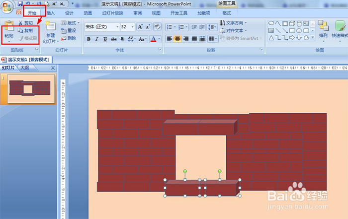 选择两个长方体——开始——复制——粘贴——移到白色矩形的上方