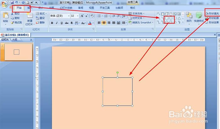 开始——绘图——矩形——画一个矩形——形状填充选择无填充颜色