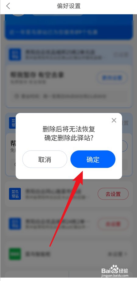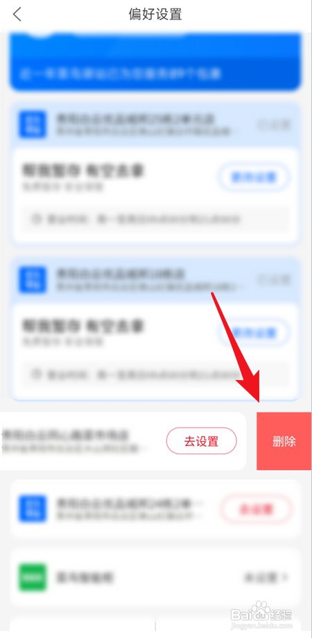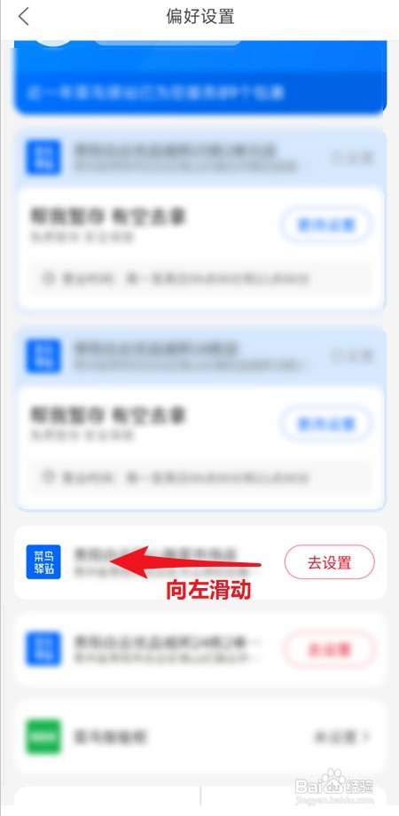 在“偏好设置”界面,向左滑动要删除的菜鸟驿站,如图所示