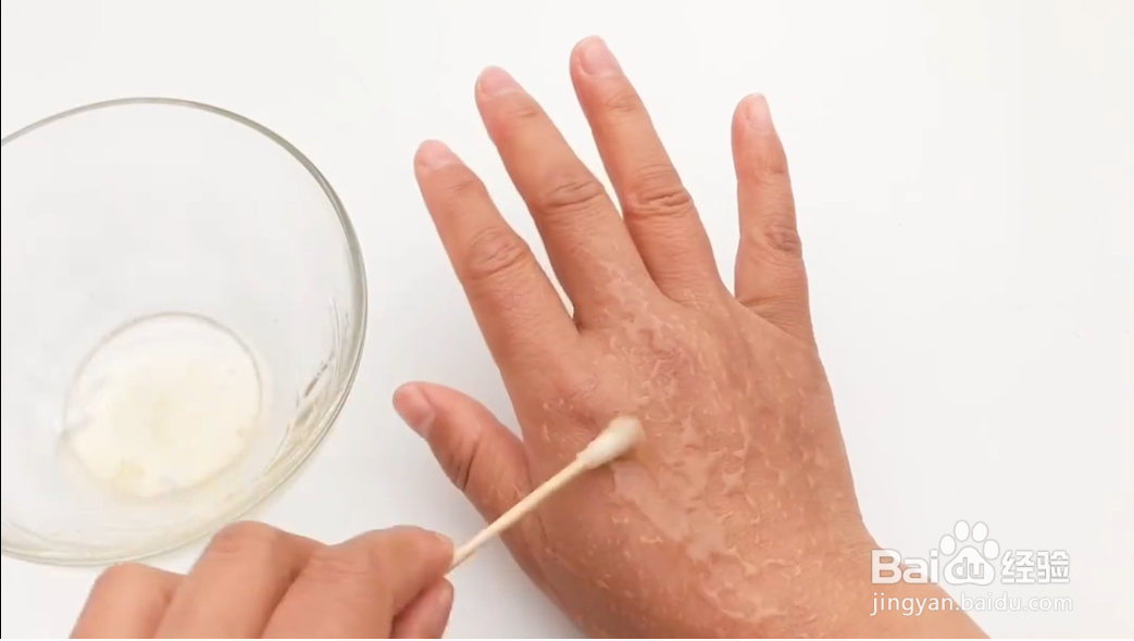 对于皮肤经常性发生干裂我们可以利用红霉素软膏来化解它。首先我们在碗中挤入红霉素软膏。