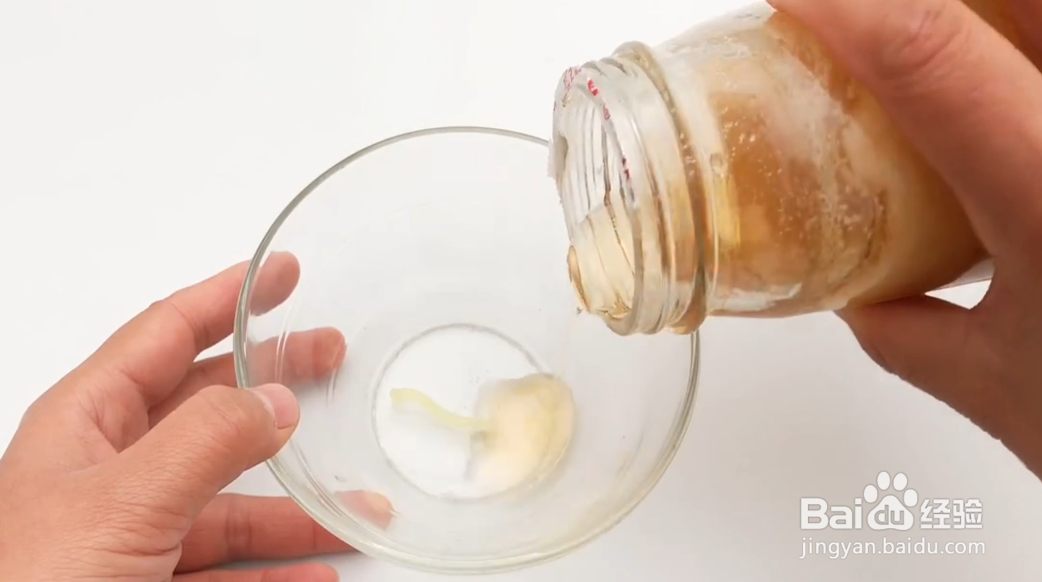 然后再拿出蜂蜜往碗中倒入一勺这样的蜂蜜。