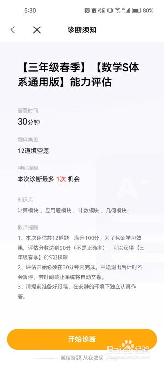 6.诊断时,选择想要测试的课程或能力