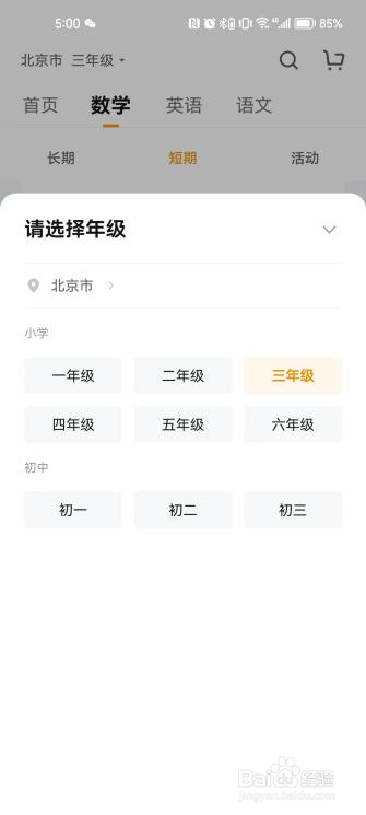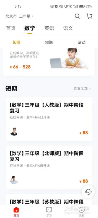 2.再点击下方的数学,数学课分为长期课程、短期课程,可以根据自家孩子的学习需求进行选择