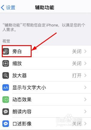 首先,打开手设置功能中的辅助功能中的旁白属性