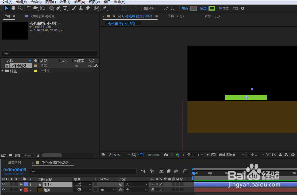 新建一个纯色层,颜色设置为泥土的颜色,调整位置,作为毛毛虫爬行的地面。