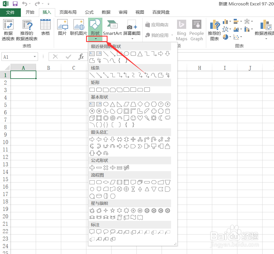 点击形状下方箭头