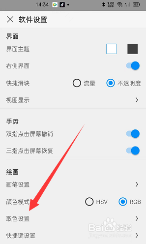 最终在取色设置页面上方找到取色灵敏度,拉动圆点调整灵敏度即可。
