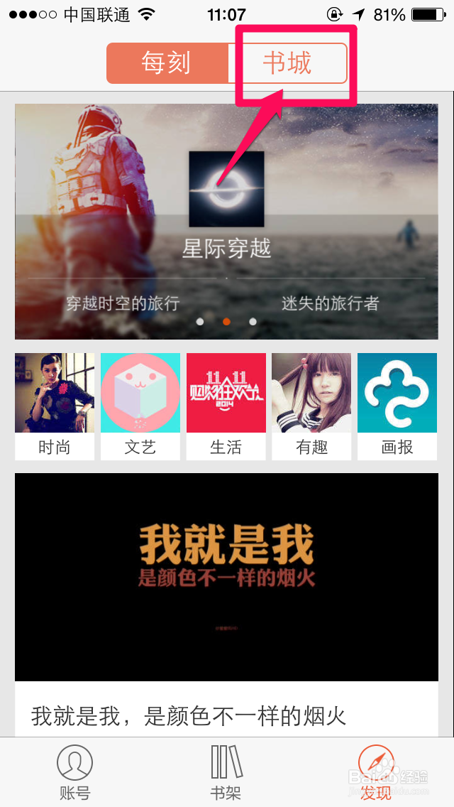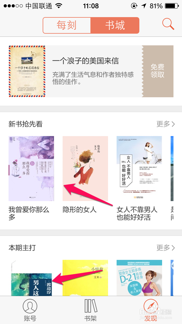 在发现这里,点击进入书城。