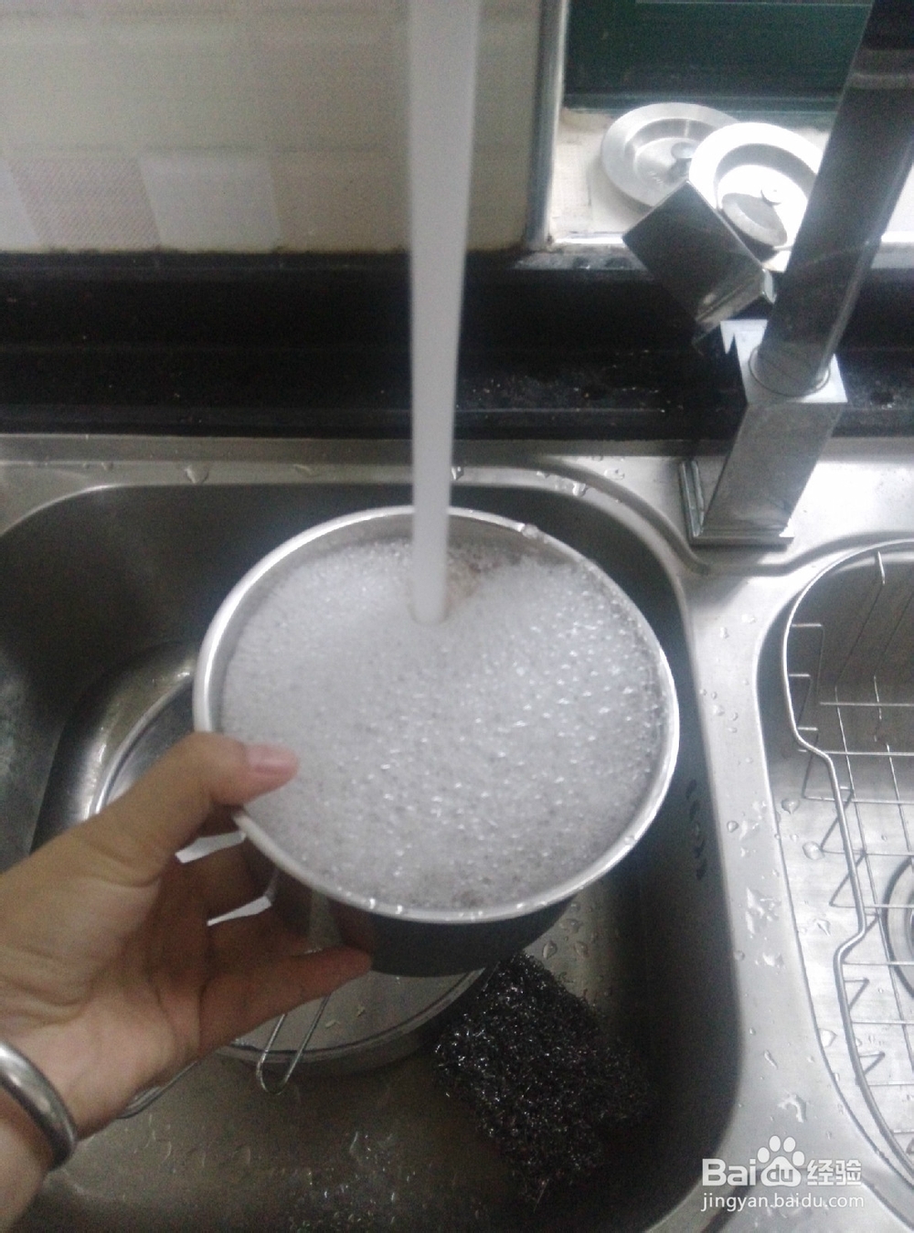 清洗黄豆,冲洗几遍没有泡沫即可。