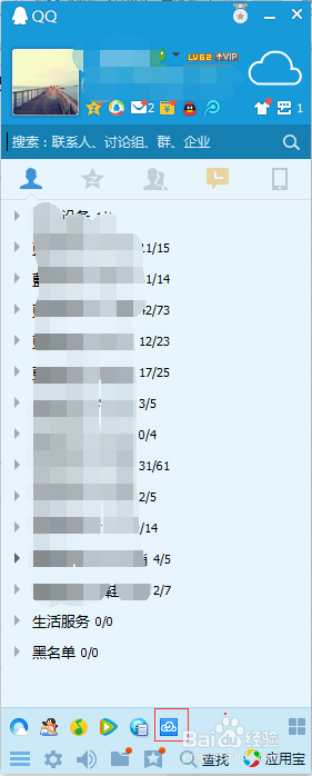 想保存点文件,想到有QQ网盘,平时用QQ的多,上传和下载文件就方便,但随着QQ的升级,软件越来越多,网盘的入口已经找不到了,泪奔。