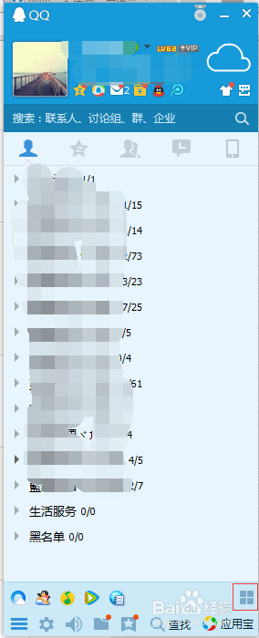 打开QQ面板,在右下角4个小方块的图案,点击打开应用管理器。
