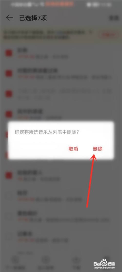在弹出的窗口中选择“删除”,即可批量删除歌曲。如下图。