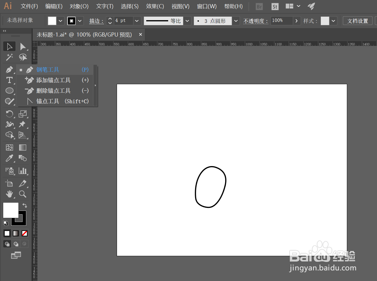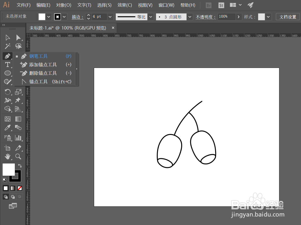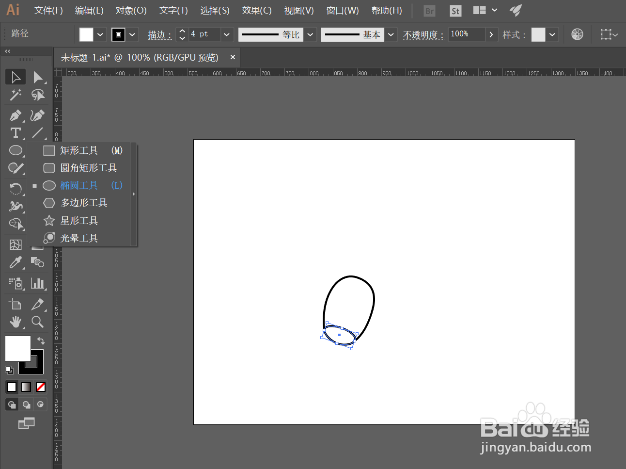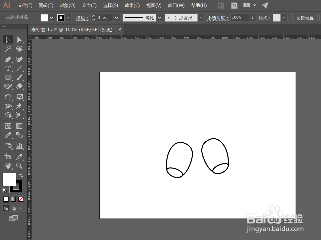 从工具栏找到“钢笔工具”,绘制一个形状,填充白色,加上黑色描边