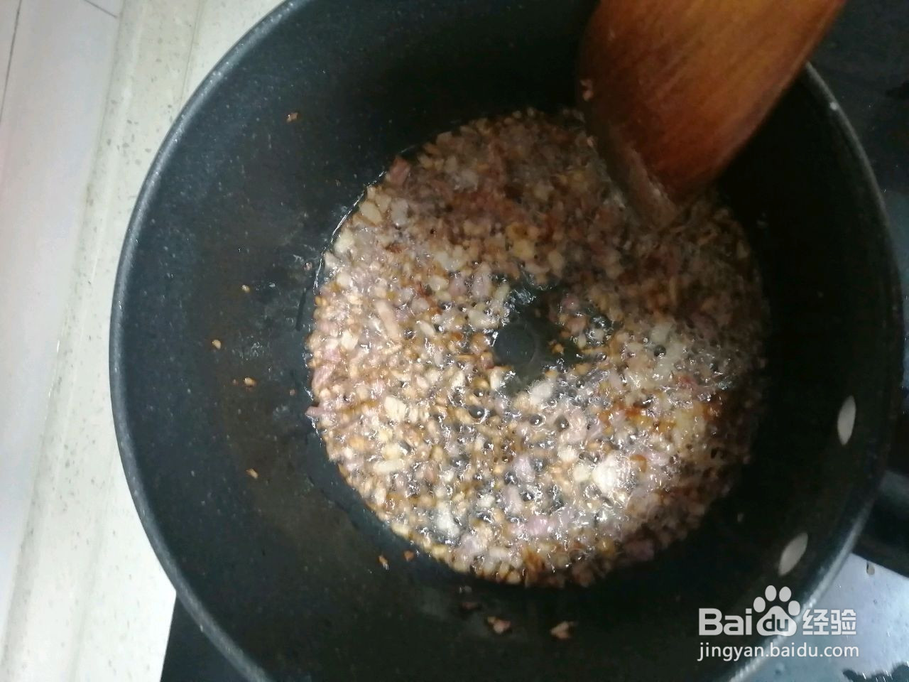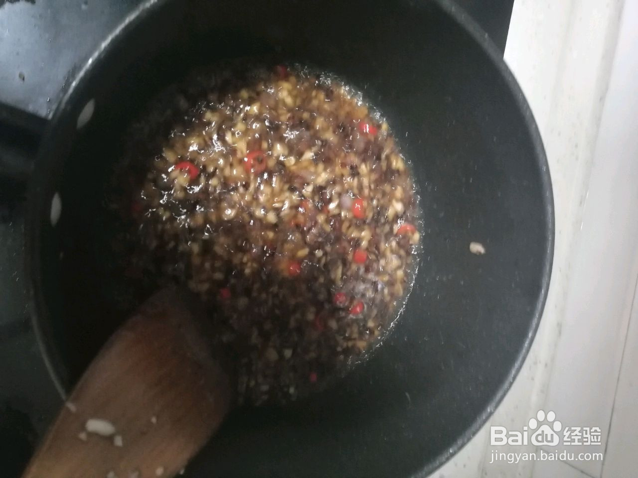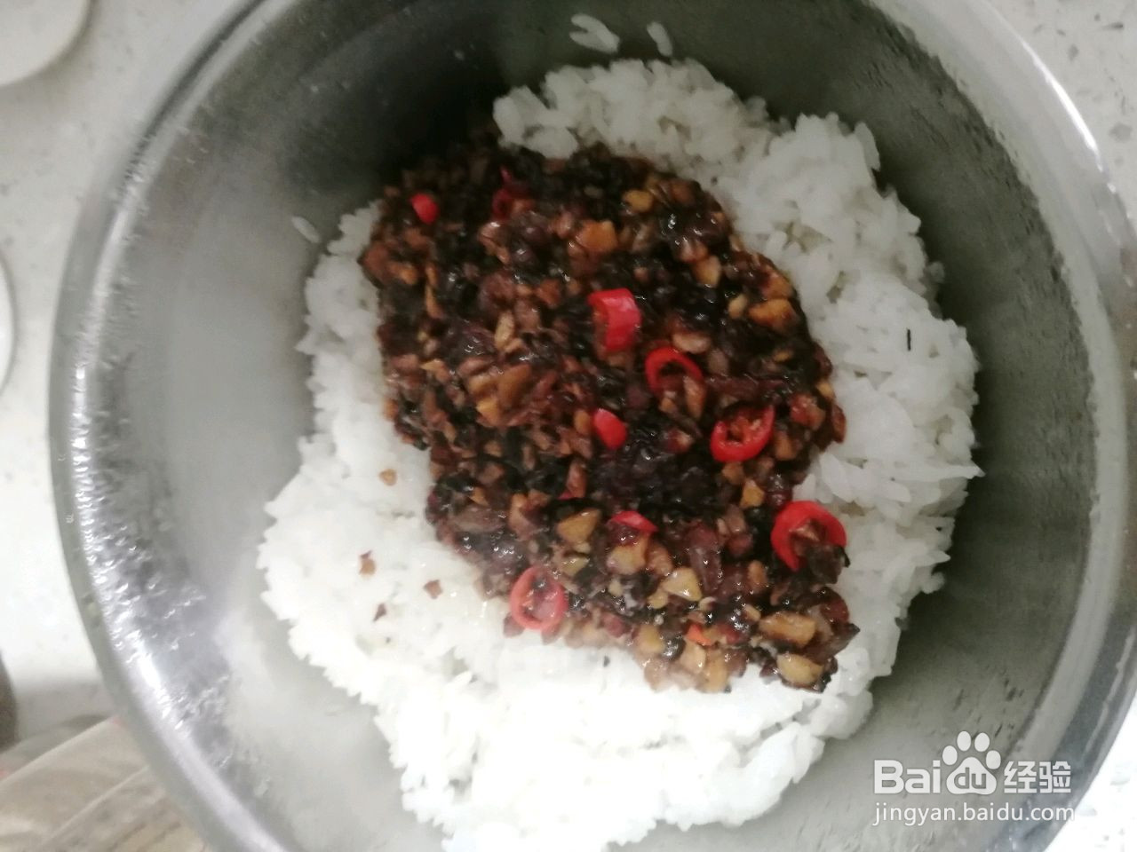 加入香菇辣椒炒炒炒,放一汤勺耗油,一小勺盐,一小勺十三香。加沟婶言点水让里面有汤汁的感觉,拌饭就好拌点。