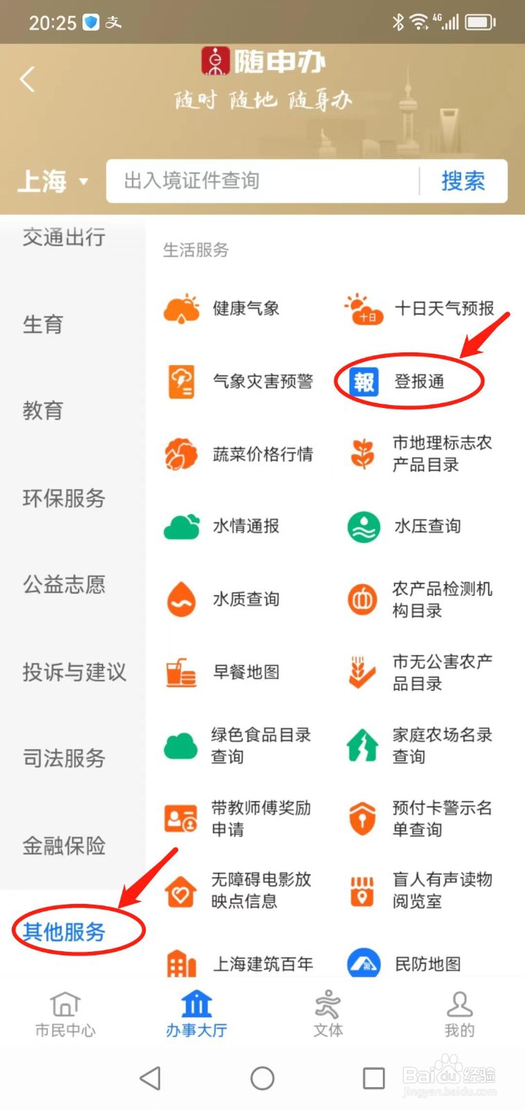 下滑手机,找到其他服务,点击“登报通”。