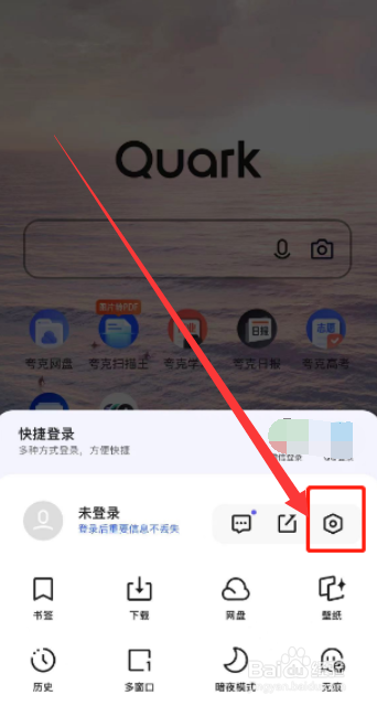 首先,点击打开夸克下面的如图按键。