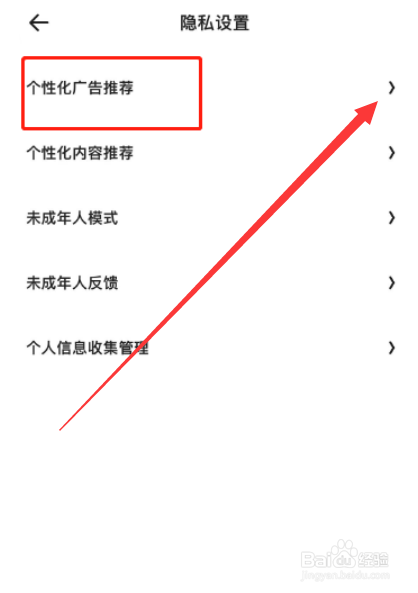 随后,在隐私设置页面里找到个性化广告推荐。