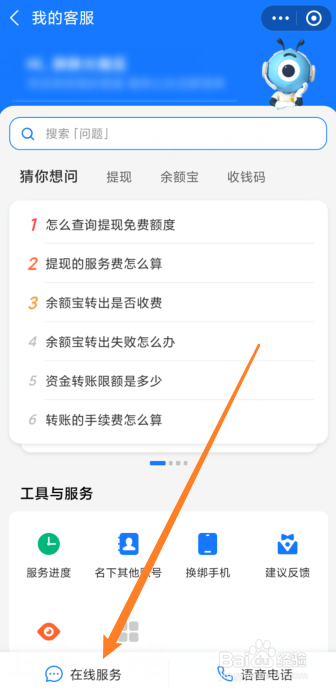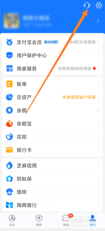 打开支付宝点击底部人形图标,进入我的页面,点击顶部客服头像