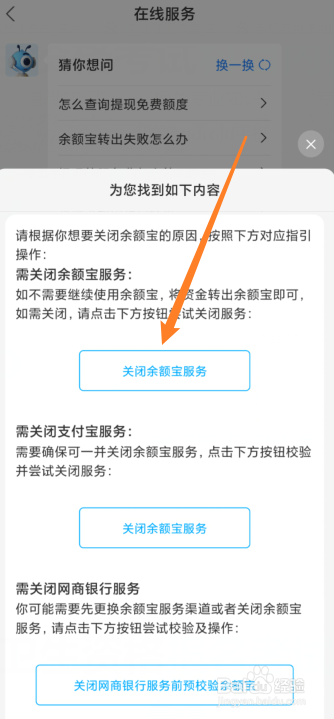 点击关闭余额宝服务按钮,就可以注销余额宝了